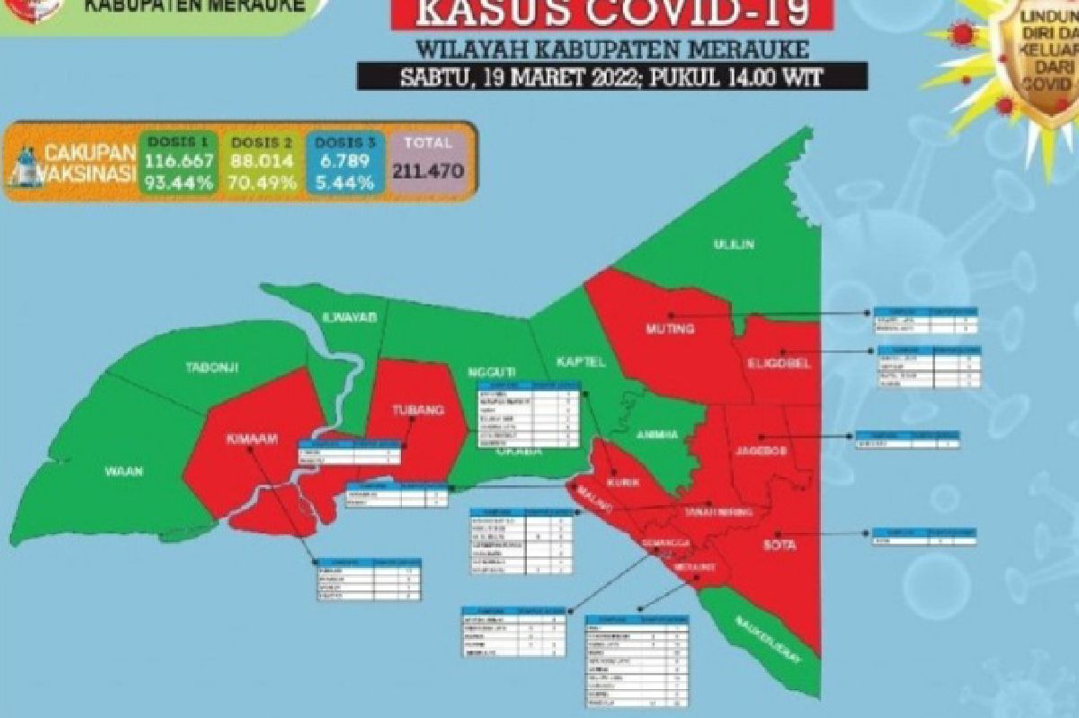 Metro Merauke – Juru bicara Satgas COVID-19 Merauke dr. Neville Muskita kepada Antara, Sabtu, mengatakan 11 dari 20 distrik di Kabupaten Merauke masuk zona merah COVID-19.