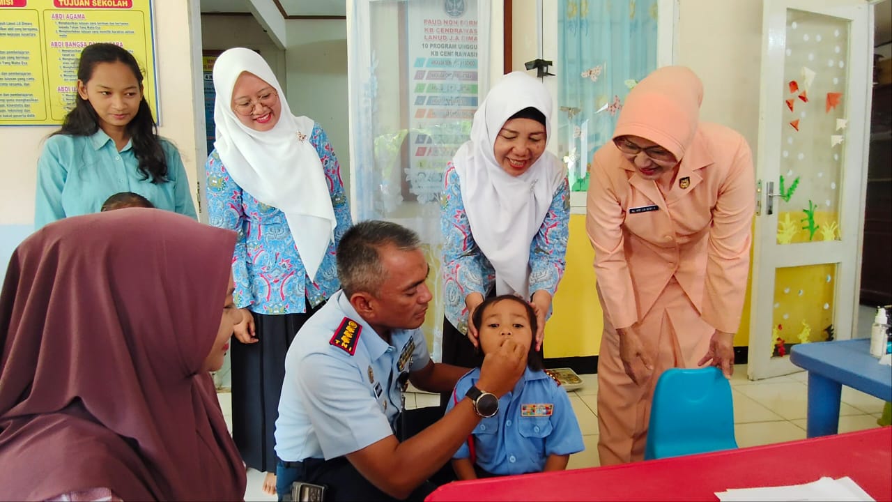 Sebanyak 58 anak usia dini di TK Angkasa dan Paud Cendrawasih Lanud J. A Dimara mendapatkan Vitamin A yang secara langsung diberikan Komandan Lanud J. A Dimara, Kolonel Pnb Beny Aprianto yang juga sebagai pembina sekolah tersebut serta Ketua PIA Ardhya Garini Cabang 6 Daerah III Senin, Ny Ade Lia Pertiwi Beny Aprianto, (25/08/2025).