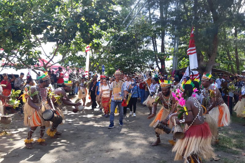 Peserta KMAN VI yang tiba di Kampung Enggros disambut dengan tarian Rohmening sebagai ritual adat dari masyarakat setempat di kawasan pantai Ciberi, Kota Jayapura yang bertujuan supaya semua proses sarasehan berlangsung dengan lancar.