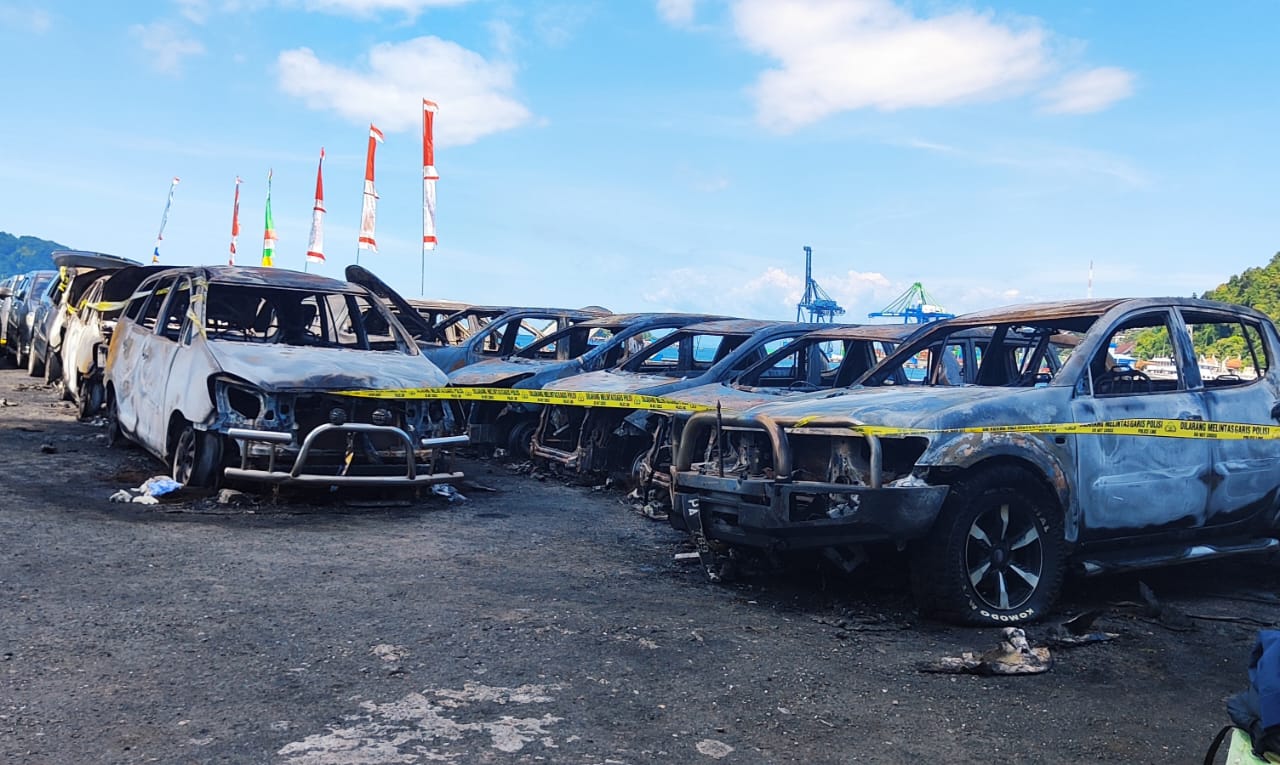 Metro Merauke – Belasan kendaraan dinas di dermaga perkir, belakang kantor DPR Papua terbakar pada Rabu (23/08/2023) dini hari.