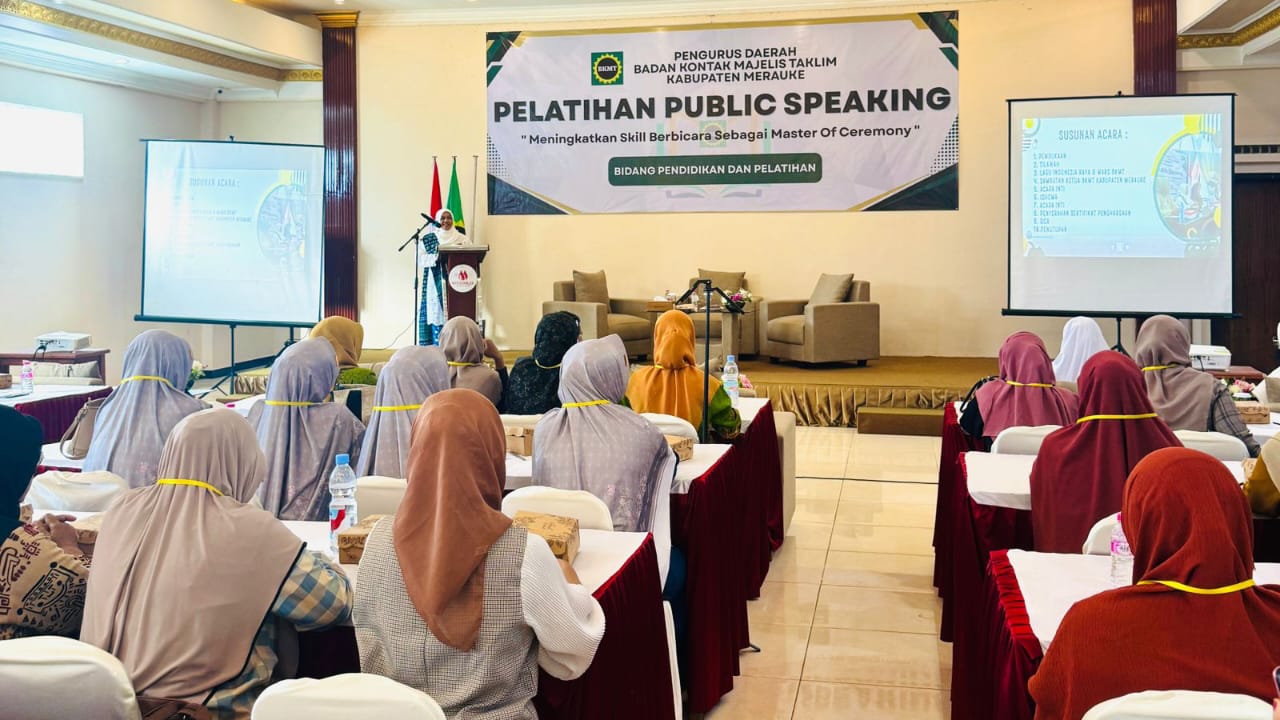 Metro Merauke – Pengurus Daerah Badan Kontak Majelis Taklim (BKMT) Kabupaten Merauke, Papua Selatan, kembali menggelar Pelatihan Public Speaking Batch 2 yang berlangsung disalah satu hotel, Minggu (09/11/2025).