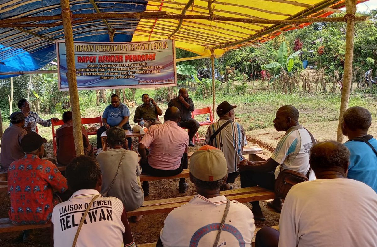 Ketika itu, sebelum perayaan Natal Kelompok Khusus DPR Papua melaksanakan sosialisasi perlindungan sagu dan penanaman pohon sagu di Yansu, Distrik Kemtuk Gresi.