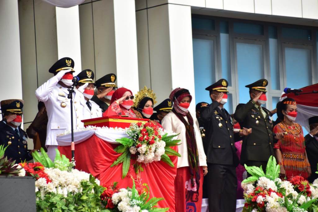 Bupati Romanus Mbaraka memimpi langsung upacara HUT RI ke-77 dan dihadiri unsur Forkopimda hingga perwakilan pelajar di Merauke. (Nuryani)