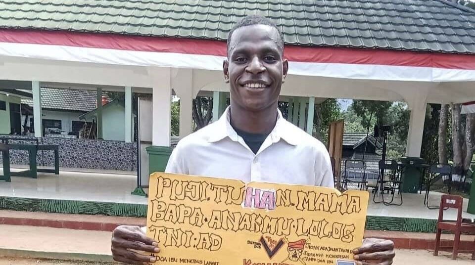 Seorang pemuda asli Papua (OAP) yang menyimpan bara api di dadanya, keinginan kuat untuk menjadi prajurit TNI.