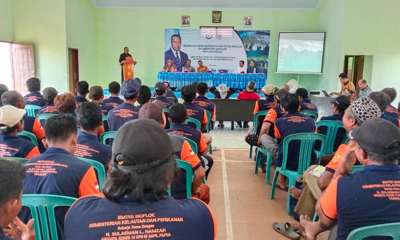 Terbukti, Legislator H Sulaiman L Hamzah bersama Direktorat Jenderal Perikanan Budidaya, Kementerian Kelautan dan Perikanan menggelar kegiatan bimbingan teknis (bimtek), berupa sistem Budidaya Ikan Bioflok untuk warga di Kampung Marga Mulya, Merauke, Papua.