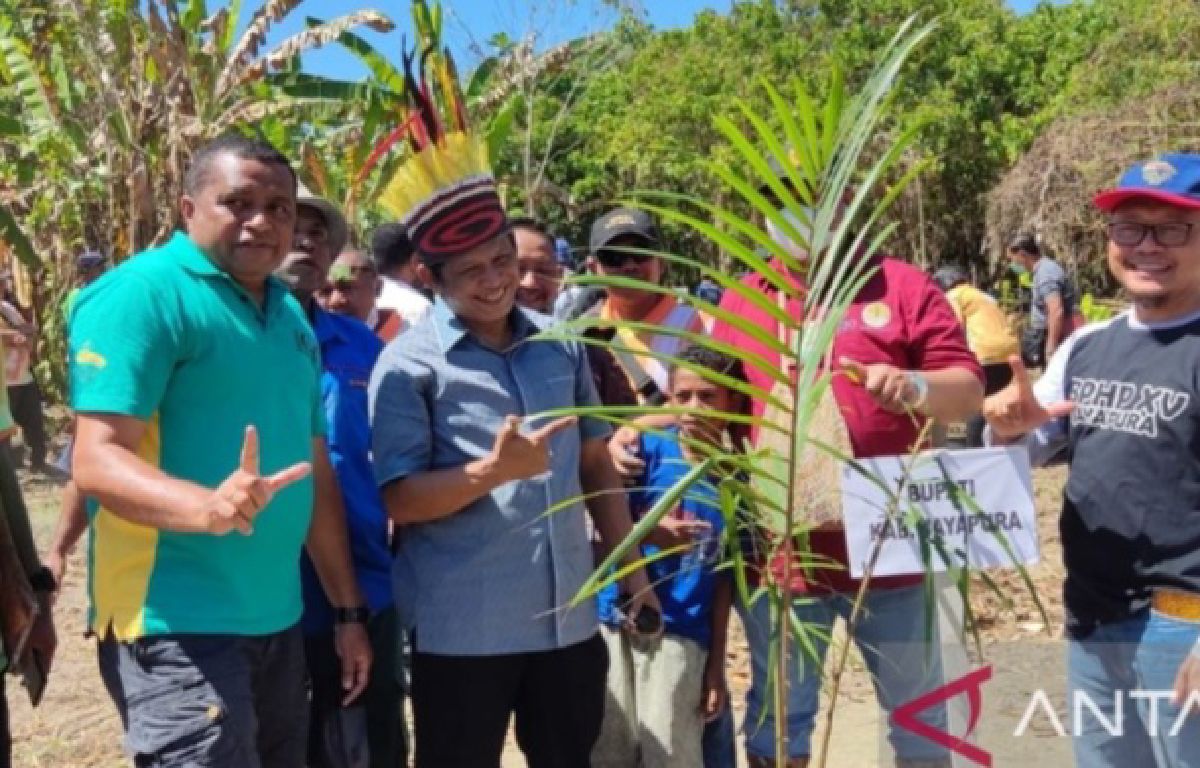 Aksi penanaman 1.000 bibit pohon sagu dilaksanakan di Kehiran II, Kampung Ifale, Distrik Sentani, Kabupaten Jayapura, Papua, pada Jumat (10/06/2022). (Antara)