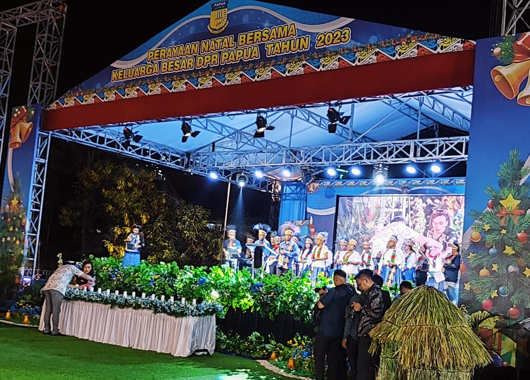 Metro Merauke – Dewan Perwakilan Rakyat atau DPR Papua, menggelar perayaan Natal pada Jumat (15/12/2023). Perayaan Natal ini dilaksanakan di halaman parkir gedung II DPR Papua, diisi dengan pemberitaan firman dan puji-pujian.