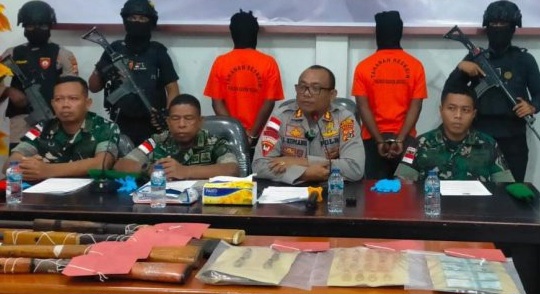 Keduanya ditangkap di pelabuhan kecil Iwot, Kampung Sokanggo, Distrik Mandobo karena membawa empat senjata api laras panjang tanpa dokumen.