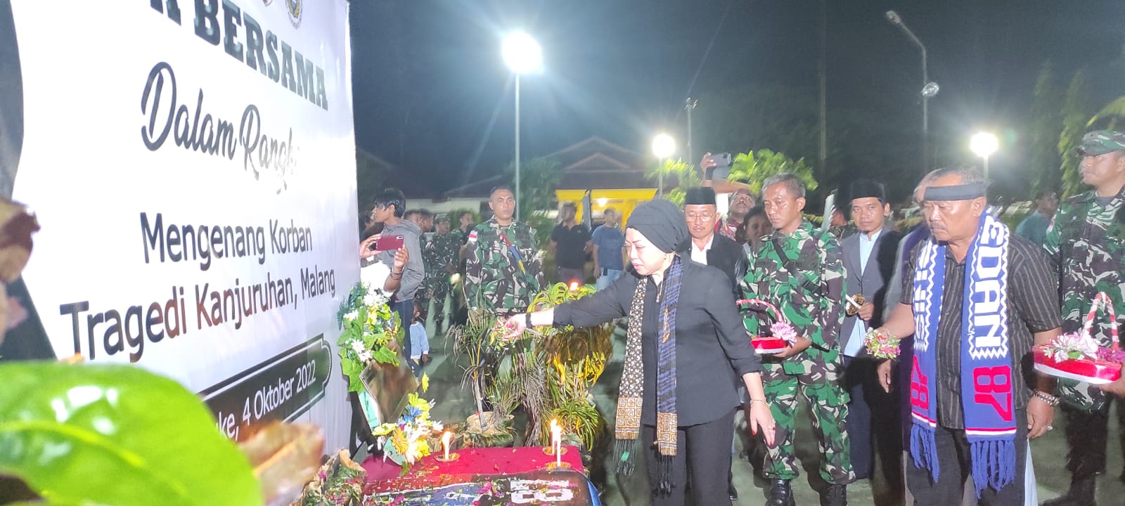 Aksi solidaritas yang berlangsung di halaman GOR Hiad Sai dipimpin langsung Wakil Bupati, H. Riduwan, didampingi Wakil Ketua I DPRD Merauke, Hj Almarotus Solikah, Kapolres AKBP Sandi Sultan, Dandim 1707/Merauke, Letkol Inf Bayu Kriswandito, tokoh agama dan pendukung club sepak bola.
