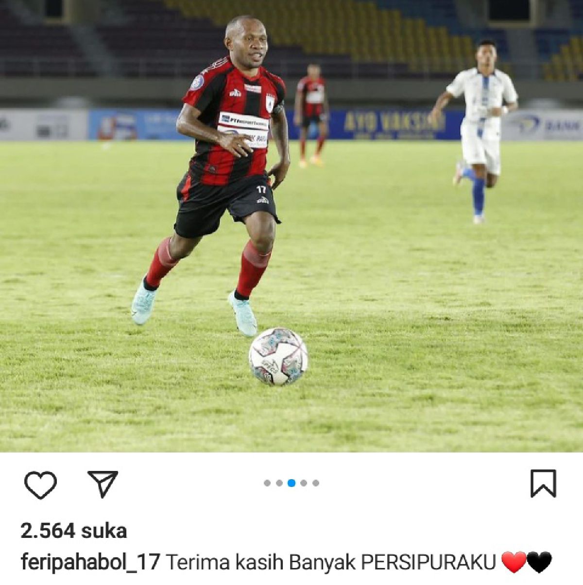 Dalam postinganya, Ferinando Pahabol mengunggah lima foto dirinya bersegam Persipura, disertai tulisan “Terima Kasih Banyak PERSIPURAKU.”