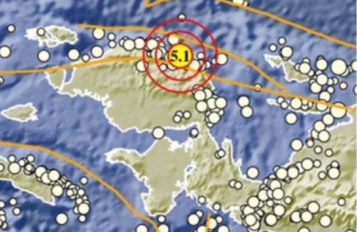 Metro Merauke – Gempa bumi magnitudo 5,1 mengguncang kabupaten Pegunungan Arfak Provinsi Papua Barat, Rabu petang sekira pukul 19.10 WIT dan tidak berpotensi menimbulkan tsunami.