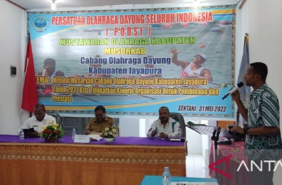Metro Merauke – Sekretaris Daerah (Sekda) Kabupaten Jayapura, Papua Hana Hikoyabi terpilih secara aklamasi menjadi ketua Persatuan Olahraga Dayung Seluruh Indonesia (PODSI) Kabupaten Jayapura periode 2022-2026.