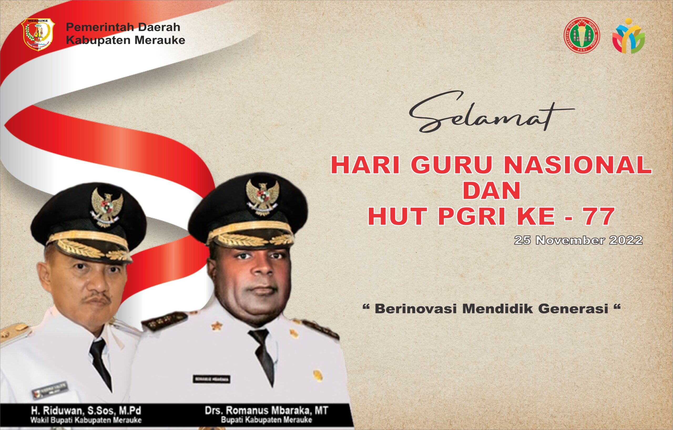 Hari Guru Nasional dan HUT PGRI ke-77 Metro Merauke25 November 202225 November 2022 Pos terkaitSelamat Hari Kebangkitan Nasional 20 Mei 2023Selamat Memperingati Hari BuruhSelamat Hari Raya Idul Fitri 2023/1444 HSelamat Hari Raya Idul Fitri Mohon Maaf Lahir dan Batin 2023/1444 HSelamat Merayakan Hari Raya Paskah 2023Selamat Merayakan Hari Raya Paskah 2023SELAMAT HARI RAYA NYEPI 2023 TAHUN BARU SAKAIsra Mikraj Nabi Muhammad SAWHari Pers Nasional 2023Hari gizi dan makanan 2023SELAMAT TAHUN BARU IMLEK 2023Selamat dan Sukses atas Pelantikan Dr. Ir. Apolo Safanpo, S.T., M.T Sebagai Penjabat Gubernur Papua SelatanSelamat Atas Pelantikan Pj. Gubernur Papua SelatanHari Pahlawan 10 November 2022Hari Sumpah Pemuda 2022Sidang Sinode Ke X & Mupel Ke V ( GPI ) di Papua 2022HUT Ikatan Dokter Indonesia ( IDI ) 2022HUT GKI Di Tanah Papua 2022Hari Santri Nasional 2022Dirgahayu TNI yang ke-77 TahunHari Kelautan Nasional 2022Hari Anak Nasional 2022Hari Pramuka 2022Hari Raya Idul Adha 1443H/2022Dirgahayu Indonesia ke-77 2022Hari Veteran Nasional 2022Tahun Baru Islam 2022Hari Radio Republik Indonesia 2022Hari Bakti Pos & Telekomoniksi 2022Hari Palang Merah indonesia 2022