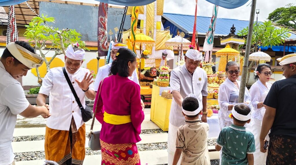 Metro Merauke – Umat Hindu di Merauke, Papua Selatan, sejak pagi berbondong-bondong menuju Pura Agung Mertha Sari untuk mengikuti persembahyangan Hari Galungan, Rabu (23/04/2025).
