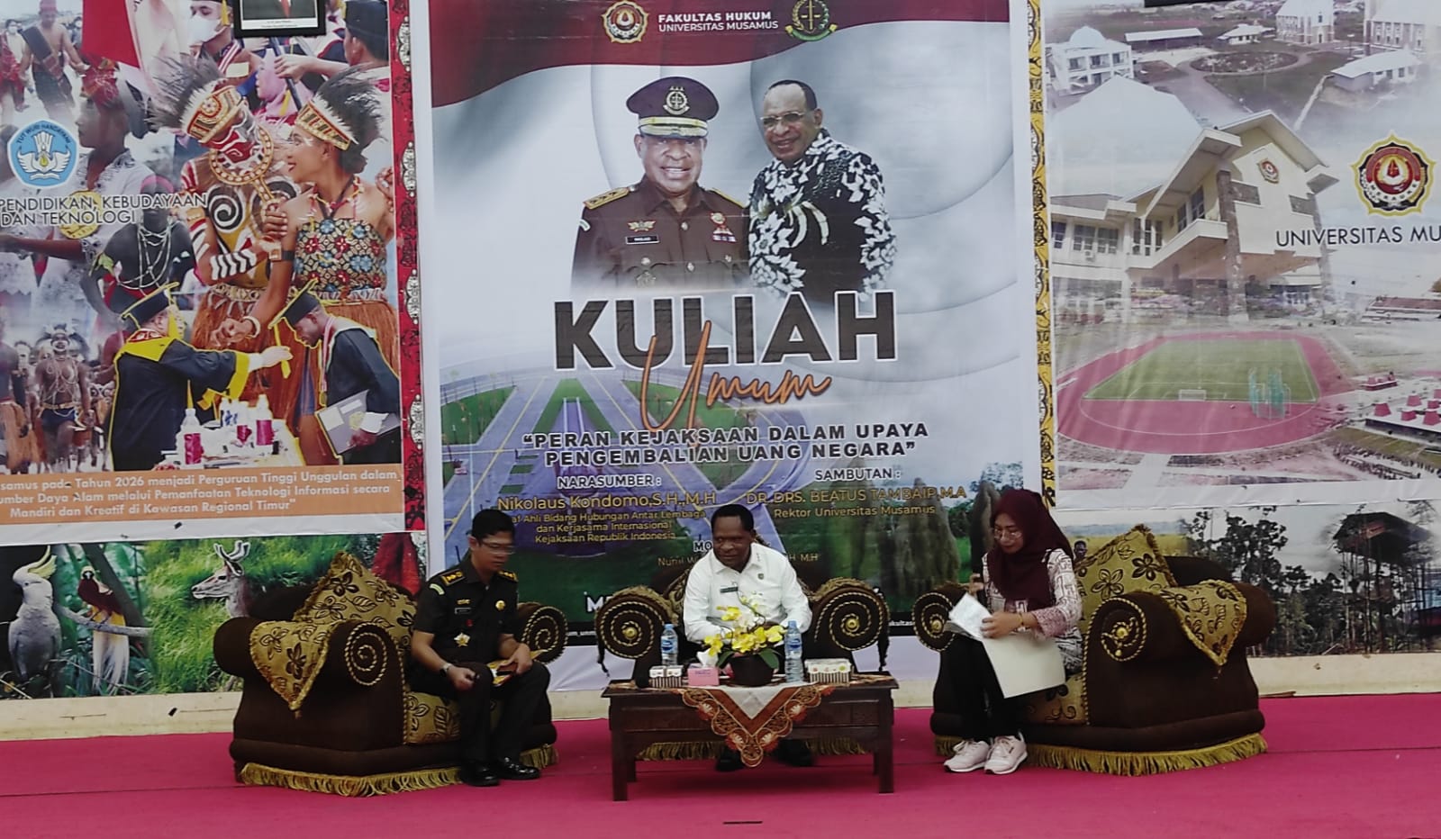 Kuliah umum bertemakan Peran Kejaksaan dalam Upaya Pengembalian Uang Negara berlangsung di kantor PKM Unmus, dibuka Wakil Rektor II Universitas Musamus, Samuel.