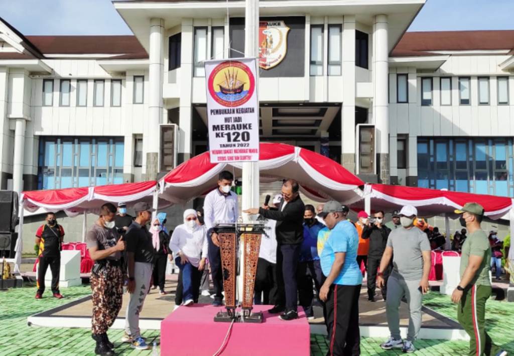 Sebagai kegiatan pembuka mengawali seluruh rangkaian kegiatan memeriahkan hari jadi Merauke tahun ini, Wakil Bupati bersama seluruh jajaran Pemkab setempat serta instansi terkait, TNI-Polri dan masyarakat melakukan jalan sehat bersama, dilanjutkan senam dan pembagian doorprize dengan hadiah utama 1 unit sepeda motor.