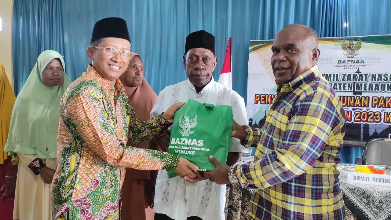 Metro Merauke – Jelang Hari Raya Idul Fitri 1444 Hijriah/2023, Badan Amil Zakat Nasional (Naznas) Kabupaten Merauke, Papua Selatan kembali salurkan bantuan paket Lebaran untuk 150 mustahik.