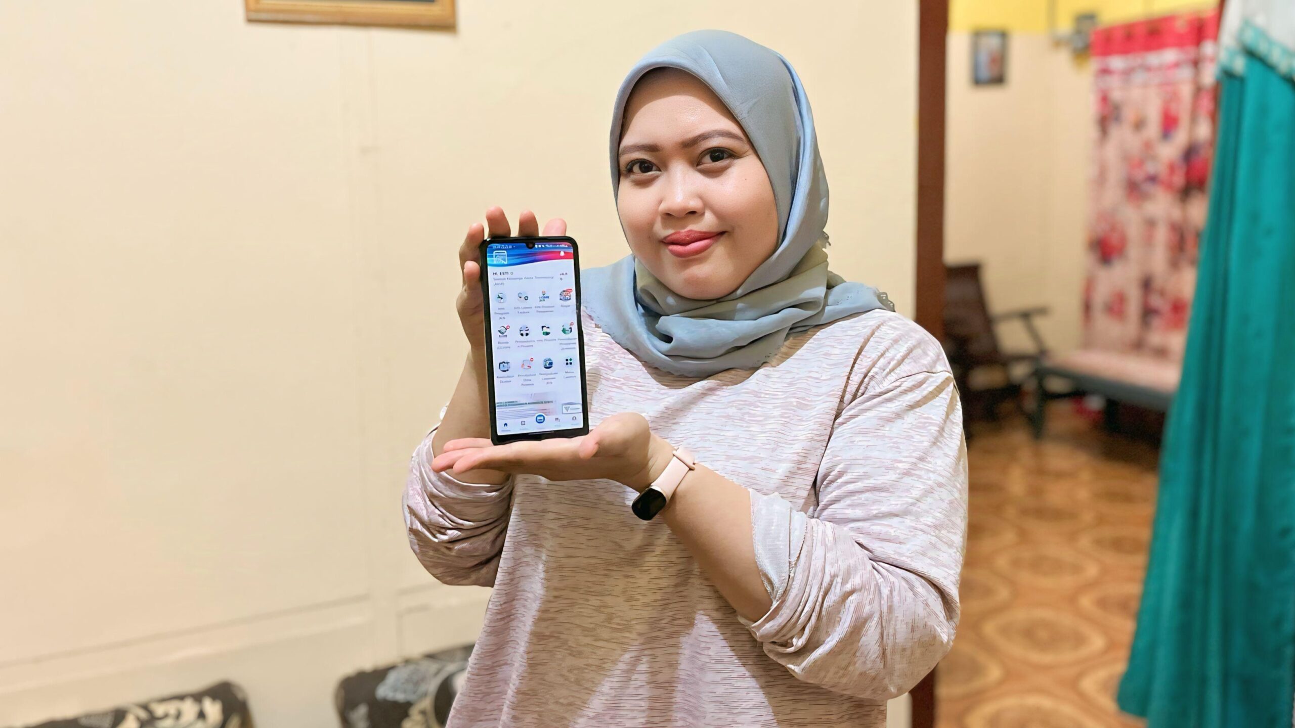 Esti Wulan (29), peserta segmen Pekerja Penerima Upah (PPU), saat ditemui menceritakan pengalamannya menggunakan kanal layanan pengaduan melalui Aplikasi Mobile JKN.