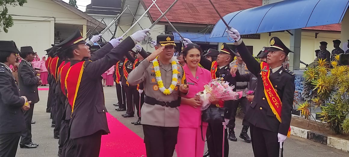 Metro Merauke – Penyambutan Kapolres Merauke, AKBP I Ketut Suarnaya dengan tradisi pedang pora, Rabu (10/02/2024).