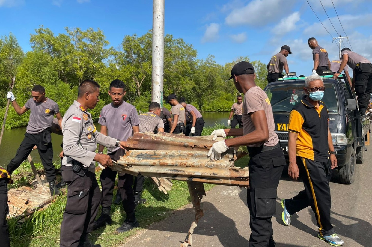 Metro Merauke – Kapolres Merauke, AKBP Untung Sangaji bersama JPU dan bintara baru, melakukan aksi peduli lingkungan, Jumat (04/03/2022).