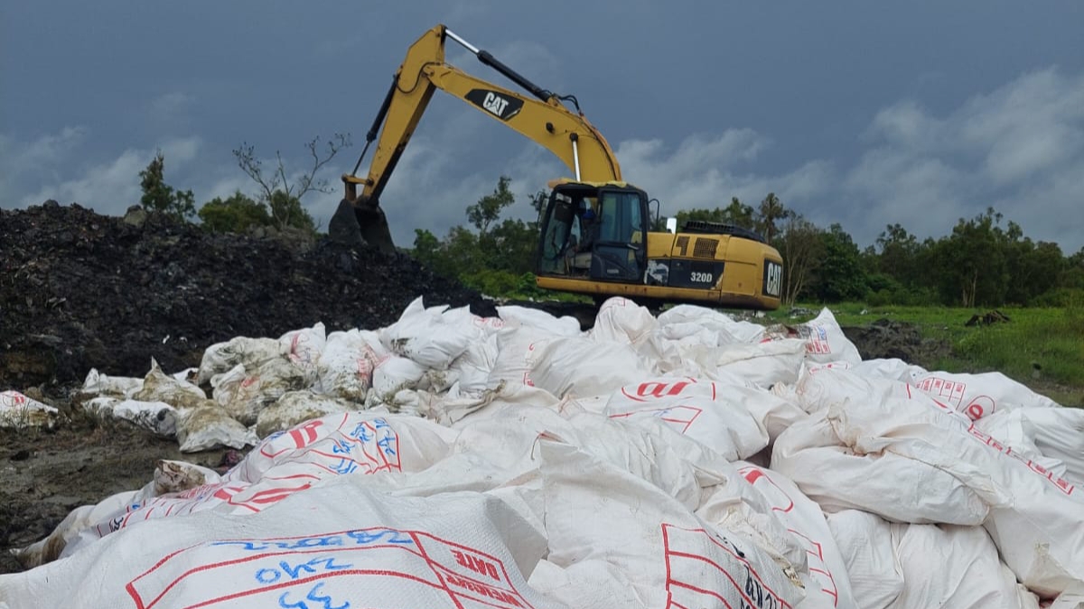 Metro Merauke – Karantina Merauke melakukan pemusnahan 12 ton daging ayam busuk di Tempat Pembuangan Akhir (TPA) Bokem, Merauke dengan cara dikubur, Sabtu (26/11/2022).