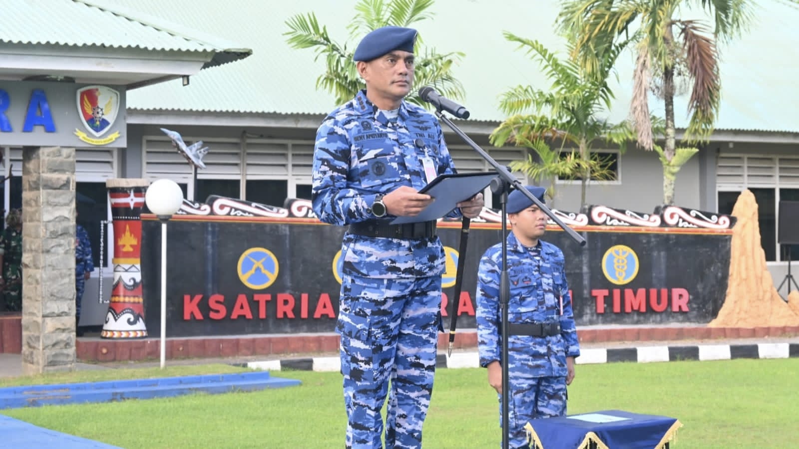 Upacara yang dipimpin Komandan Lanud J.A. Dimara, Kolonel Pnb Beny Aprianto, diikuti seluruh personel militer dan ASN sebagai sarana pemeliharaan disiplin serta jiwa korsa.