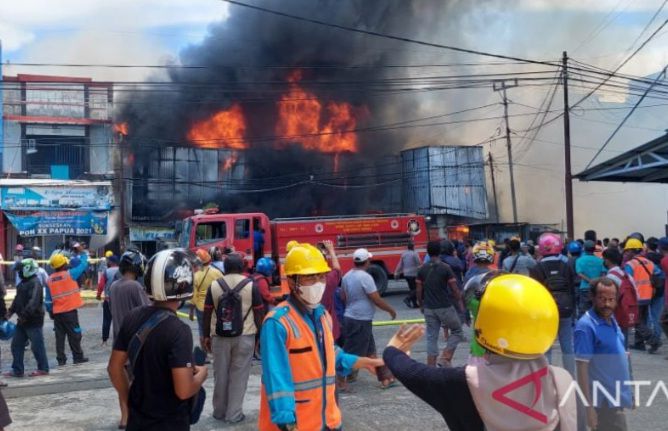 Metro Merauke – Ketenangan warga Kota Timika, Papua, pada Selasa siang (05/04/2022), terusik dengan kebakaran hebat yang menimpa enam bangunan tempat usaha di kawasan Jalan Budi Utomo, persis di samping kanan kompleks Pusat Pertokoan dan Hotel Horison Diana, Jalan Budi Utomo.