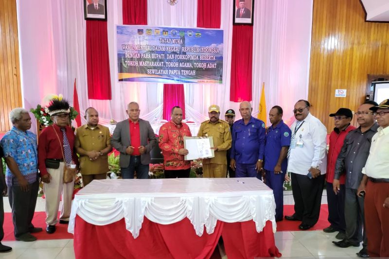 Wakil Menteri Dalam Negeri, John Wempi Watipo, dalam konferensi pers di Jayapura, Papua, Selasa, mengatakan, pada kunjungan dia ke Kabupaten Nabire, mereka tatap muka dengan bupati dan Forkopimda beserta tokoh masyarakat, agama, adat se-wilayah Papua Tengah.