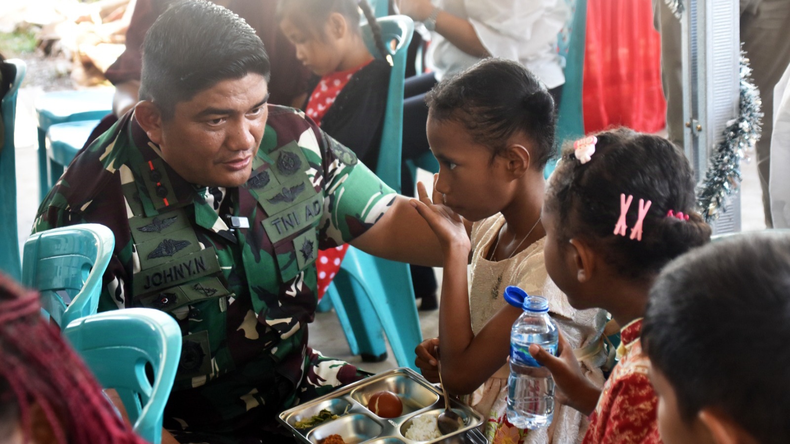 Menindak lanjuti program tersebut, Kodim 1707/Merauke bersama Badan Gizi Nasional bekerjasama dengan Bulog Merauke dan Yayasan Kartika Jaya Koordinator XVIII Kodim 1707/Merauke menggelar makan bergizi gratis di Geraja di Merauke, Papua Selatan. Minggu (05/01/2025).