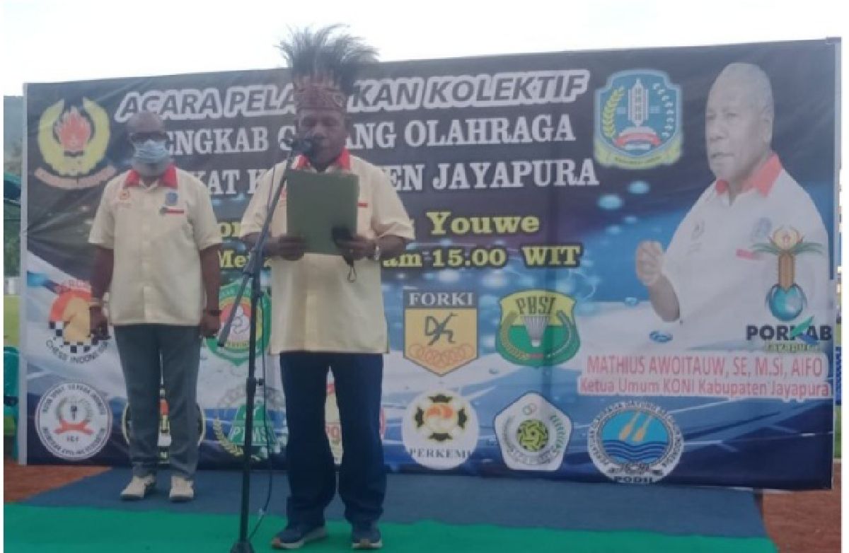 Metro Merauke – Ketua Umum Komite Olahraga Nasional Indonesia (KONI) Kabupaten Jayapura Mathius Awoitauw melantik 12 pengurus cabang olahraga di wilayah itu untuk persiapan menjelang Pekan Olahraga Kabupaten (Porkab).