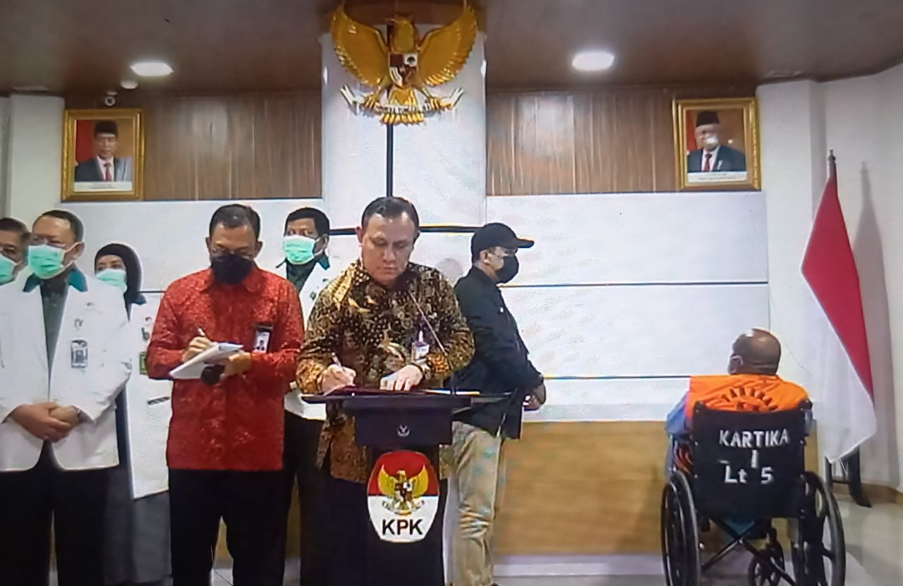 “[Namun] mempertimbangkan kondisi LE, maka penyidik KPK melakukan pembantaran sementara, perawatan sementara, kepentingan perawatan sementara di RSPAD sejak hari ini hingga kondisinya membaik, khususnya dalam hal pertimbangan kesehatan TSK LE,” kata Firli Bahuri. (Redaksi/Arjuna)