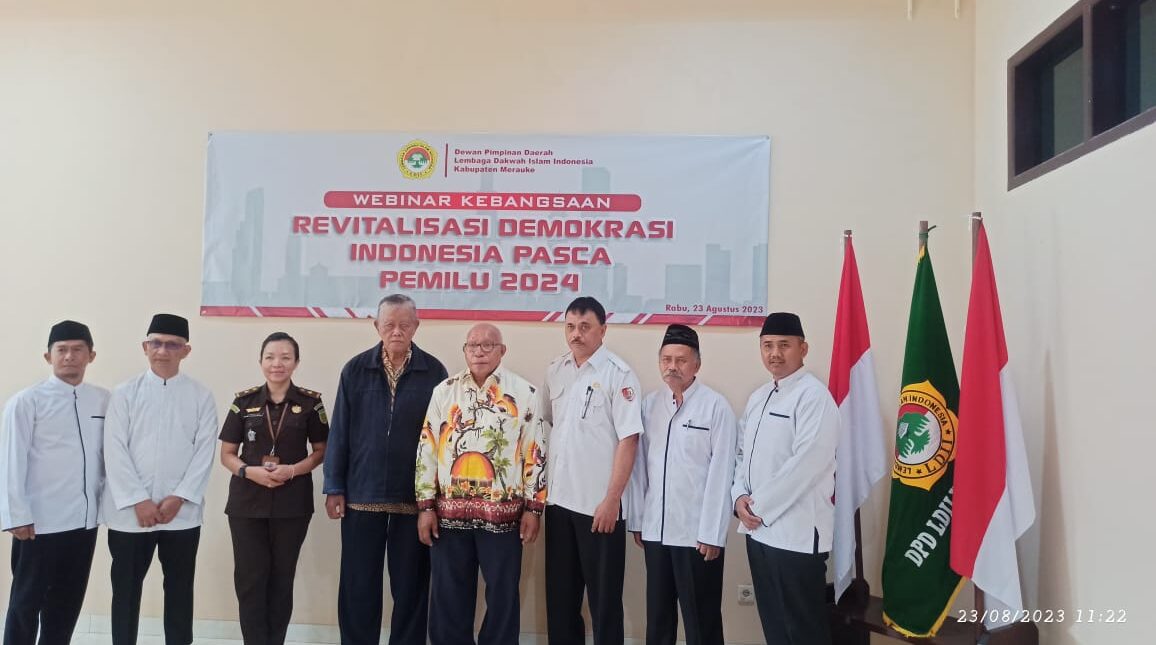 Metro Merauke – Pengurus Lembaga Dakwah Islam Indonesia (LDII) Merauke, Papua Selatan, mengikuti Webinar Kebangsaan Dewan Pimpinan Pusat LDII dengan tema “Revitalisasi Demokrasi Indonesia Pasca Pemilu 2024”, Rabu (23/08/2023).