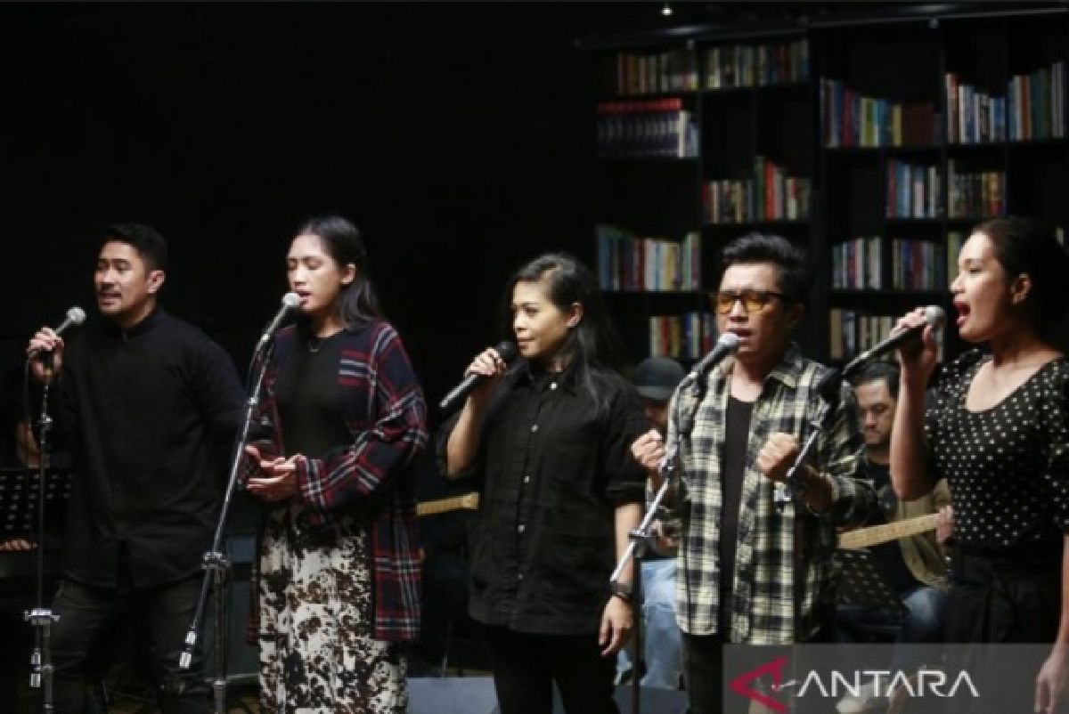 Sederet seniman dan penyanyi nasional mempersiapkan diri menjalani sesi latihan.