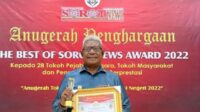 Wakil Bupati Mimika Terima Penghargaan Sorot News Award 2022