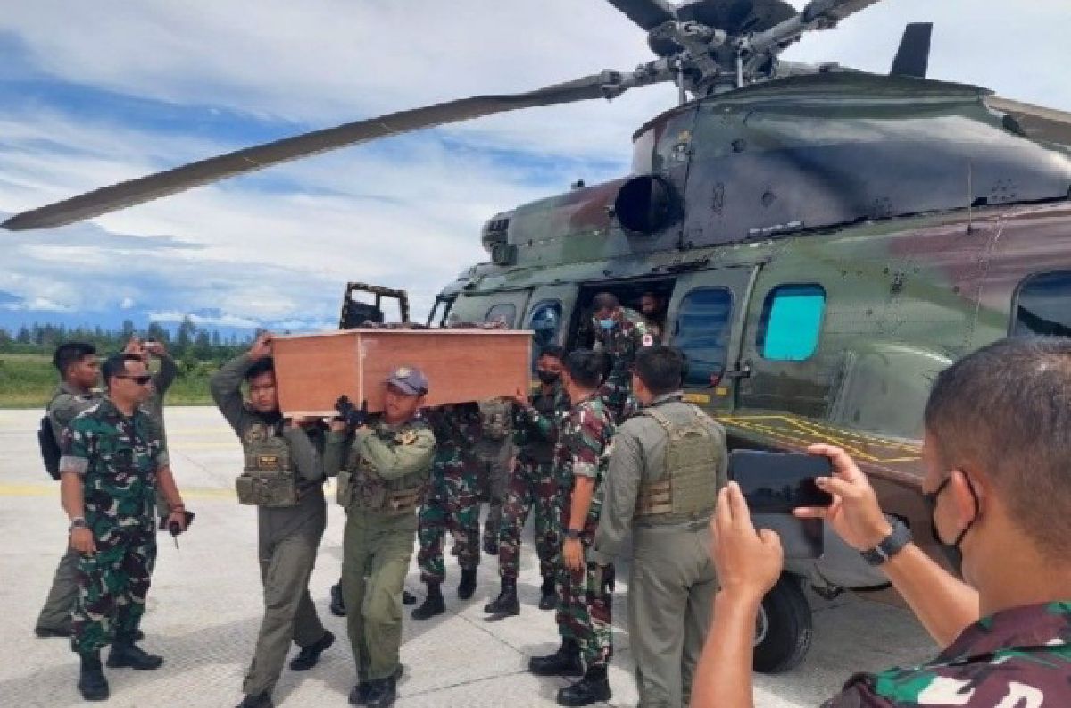Jenazah ketiga prajurit saat ini sudah berada di Timika setelah dievakuasi menggunakan helikopter Caracal.