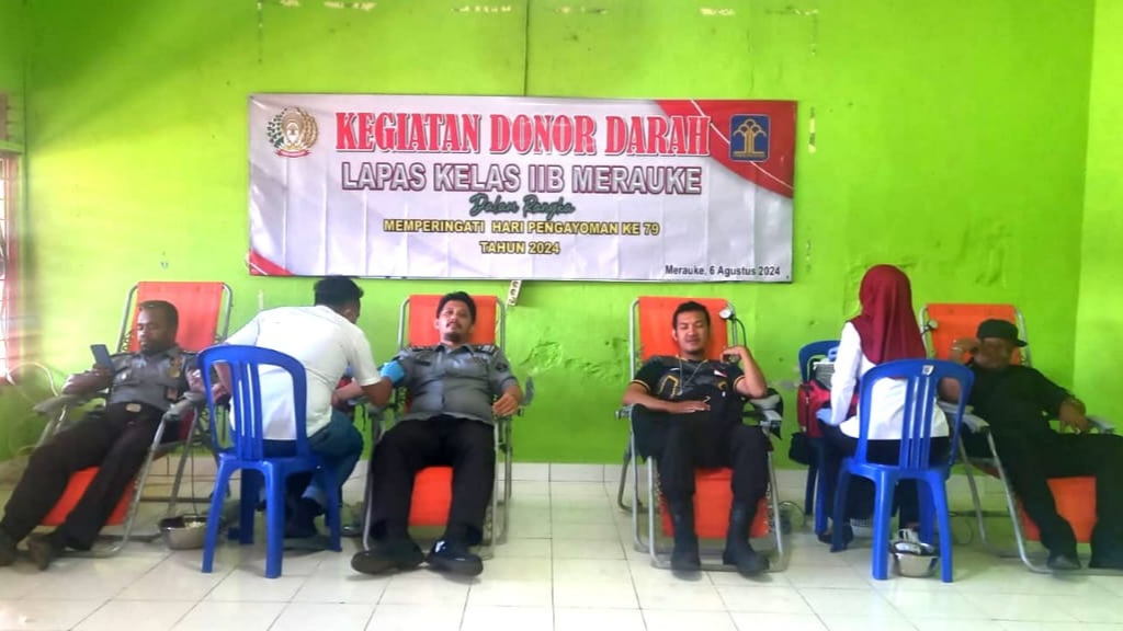 Bekerjasama dengan Palang Merah Indonesia (PMI), Lembaga Pemasyarakatan Kelas IIB Merauke antusias untuk melaksanakan rangakaian kegiatan memperingati hari Pengayoman Ke-79 Tahun 2024.