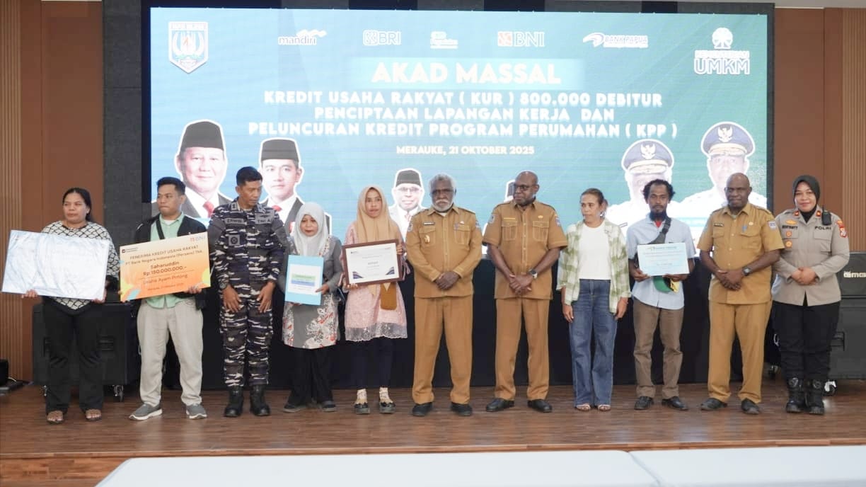 Metro Merauke – Pemerintah Provinsi Papua Selatan menggelar akad massal Kredit Usaha Rakyat (KUR) 800.000 debitur penciptaan lapangan kerja dan peluncuran Kredit Program Perumahan (KPP)