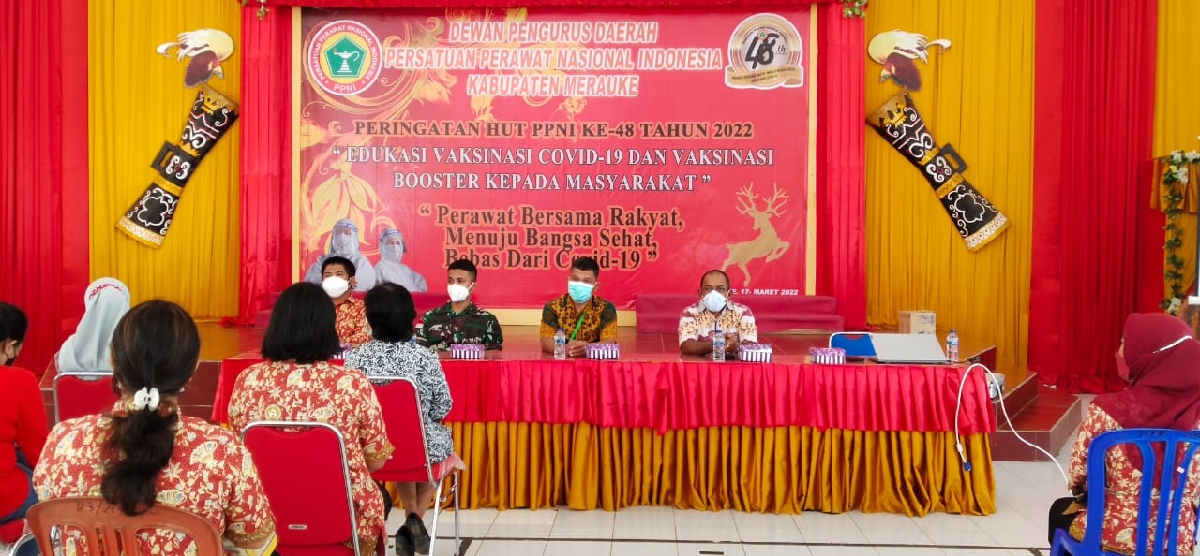 Puncak peringatan HUT PPNI di Merauke tahun ini dipusatkan di gedung serba guna Akademi Keperawatan Merauke, diikuti tenaga medis dokter dan perawat, serta dilanjutkan dengan kegiatan vaksinasi Covid 19 bagi masyarakat.
