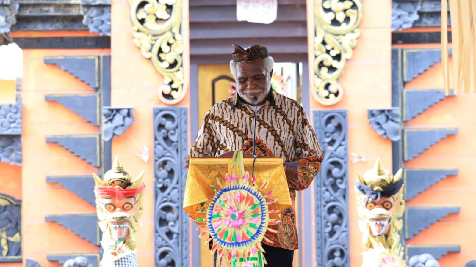 Dalam sambutan, Paskalis menjelaskan suasana kehidupan dulu dan saat ini setelah menyaksikan tarian balada cenderawasih yang disuguhkan oleh dua penari putri dari Pulau Dewata Bali yang berdomisili di Merauke.