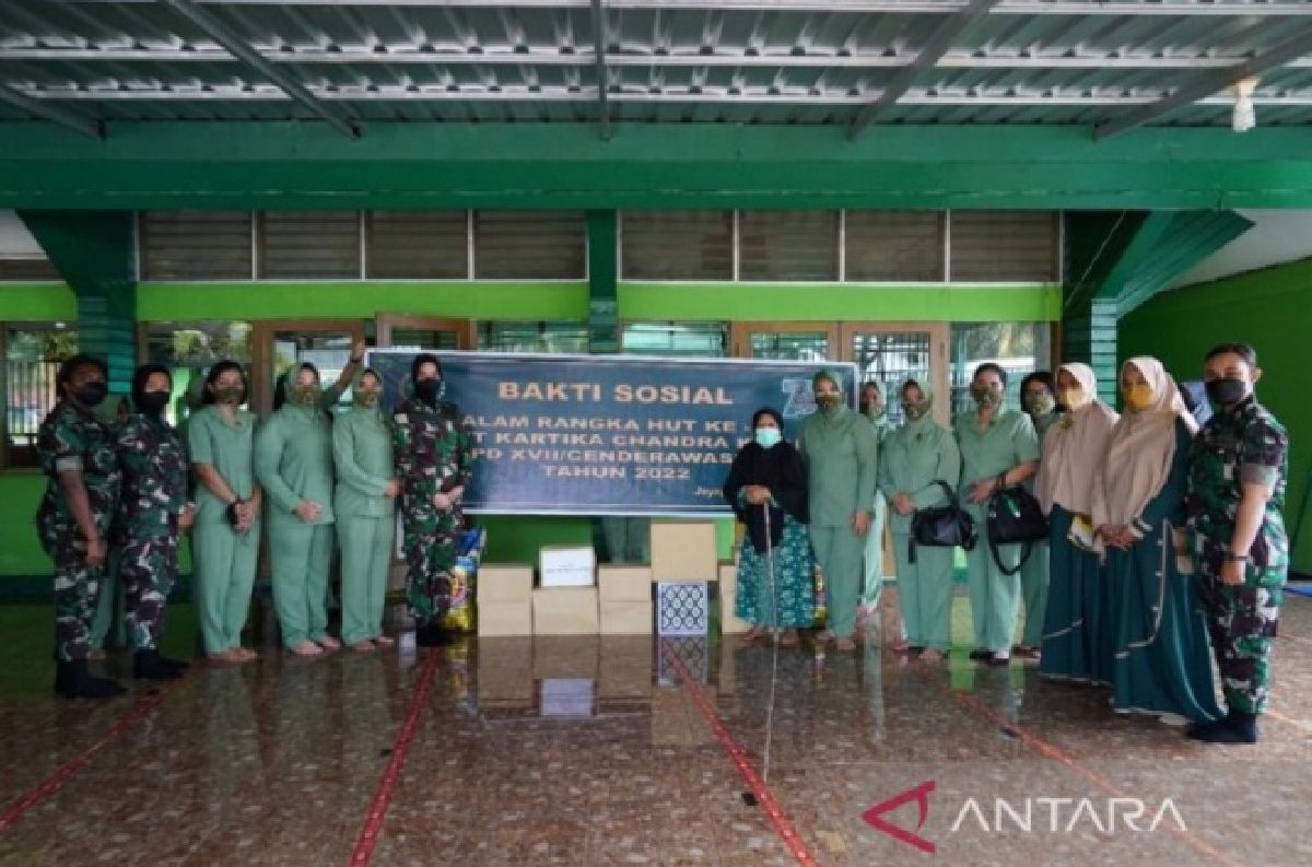 Wakapendam XVII/Cenderawasih Letkol Inf Candra Kurniawan dalam keterangan diterima ANTARA, Kamis (24/3) menjelaskan, bakti sosial pengurus Persit KCK XVII/Cenderawasih dipimpin Ketua Persit KCK Daerah XVII/Cenderawasih Ny Erni Teguh Muji Angkasa.