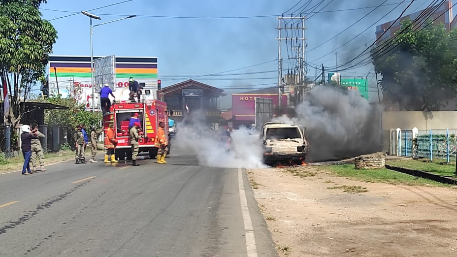 “Kayu sudah kita antar ke tempat pesanan. Pas mau kembali, sampai di Jalan Ahmad Yani, mobil tiba-tiba terbakar, “bebernya.