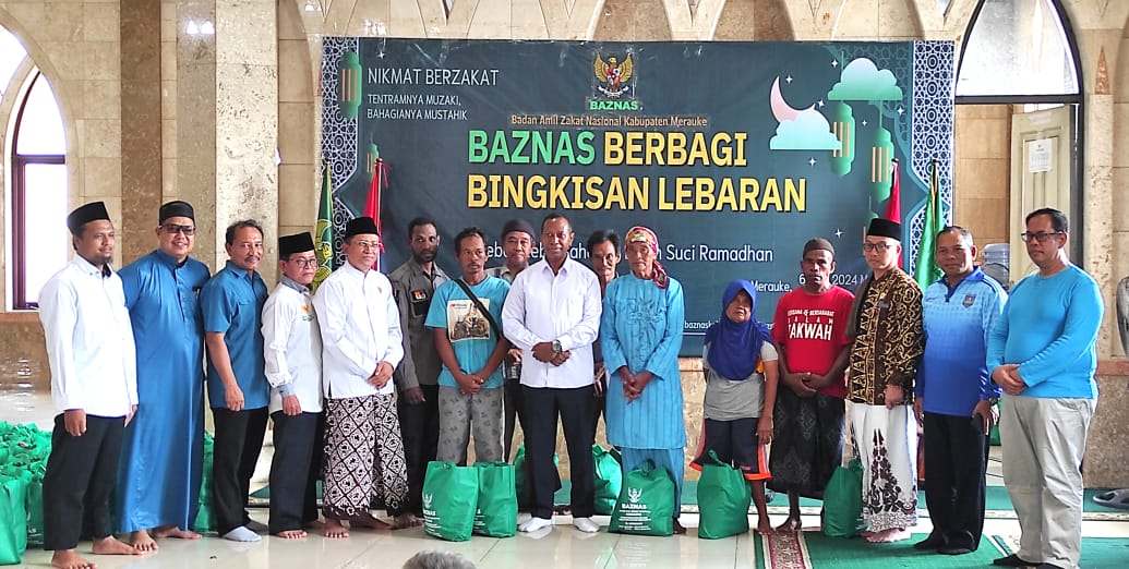 Metro Merauke – Sebanyak 250 mustahiq mendapatkan bingkisan menyambut Hari Raya Idul Fitri 1445 Hijriah dari Badan Amil Zakat Nasional (Baznas) Merauke, Papua Selatan, Sabtu (06/04/2024).