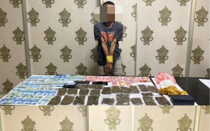 “Penangkapan pertama terhadap seorang wanita yang mengenakan kaos bercorak Bintang Kejora berinisial KT (24 tahun) bersama barang bukti ganja seberat 23,92 gram,” ujar Kabid Humas.