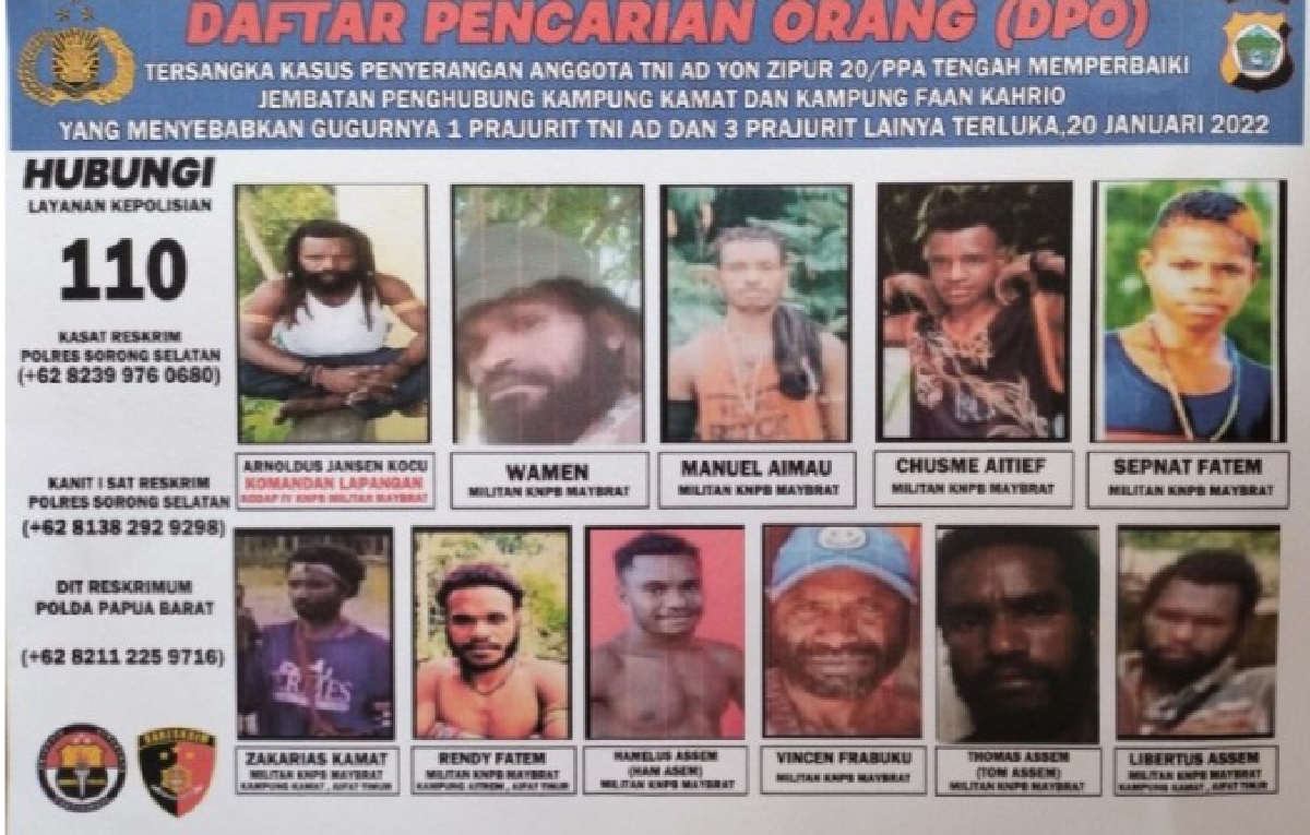 Metro Merauke – Polda Papua Barat menetapkan 11 tersangka dalam Daftar Pencarian Orang (DPO) peristiwa penyerangan bersenjata yang menewaskan Sertu Anumerta Miskael Rumbiak di kabupaten Maybrat, Papua Barat, pada 20 Januari 2022.