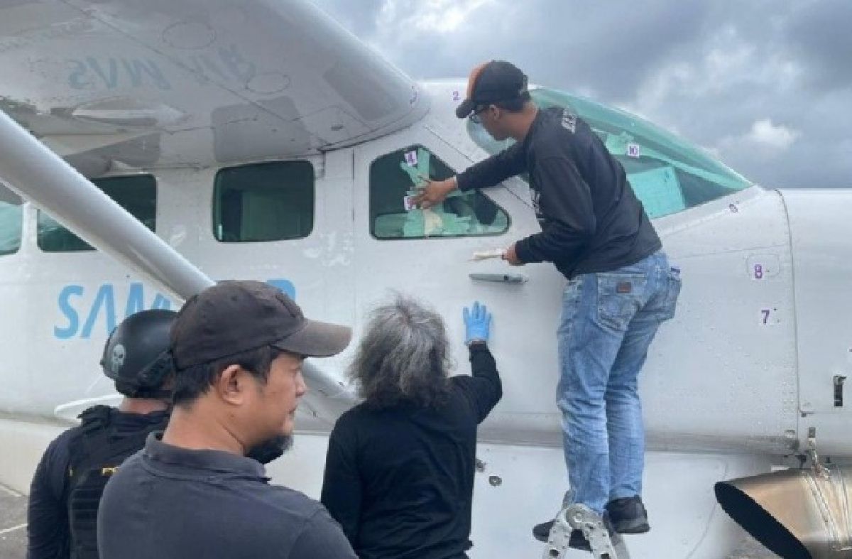 Metro Merauke – Unit investigasi Subsatgas lidik Satgas Gakkum Ops Damai Cartenz bersama Polres Nduga, Kamis (09/06/2022) mengolah TKP penembakan pesawat SAM Air di Bandara Kenyam, Kabupaten Nduga, Papua.