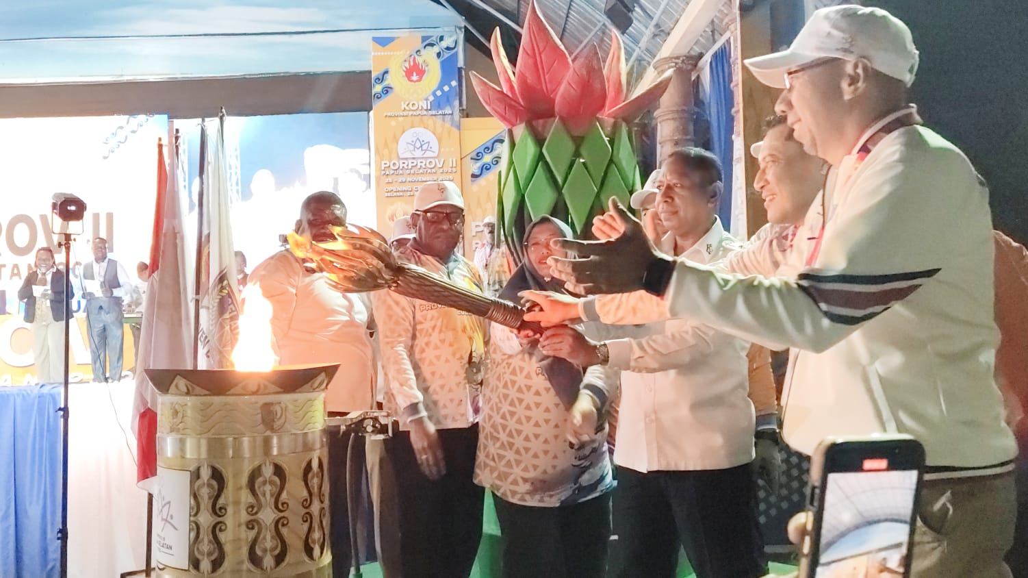 Metro Merauke – Pekan Olahraga Provinsi (Porprov) II Papua Selatan resmi dibuka Gubernur Apolo Safanpo yang ditandai penyulutan api bersama-sama di Taman Mandala Merauke, Selasa (25/11/2025).