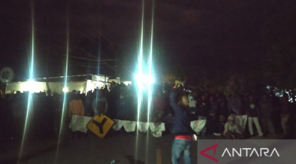 Polisi membubarkan massa pada Sabtu (12/2) tengah malam karena telah memblokade ruas jalan Trans Sulawesi di Desa Katulistiwa, Kecamatan Tinombo Selatan, Kabupaten Parigi Moutong dari siang hari.