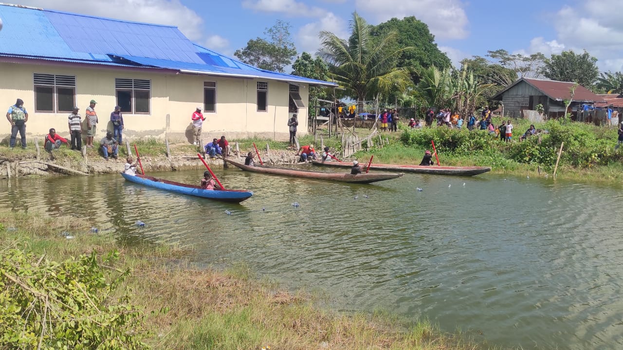 Kali ini, lomba dayung perahu tradisional digelar dengan lokasi kegiatan di areal pemancingan Gudang Arang, Kelurahan Kamahedoga, Merauke, Rabu (09/08/2023).