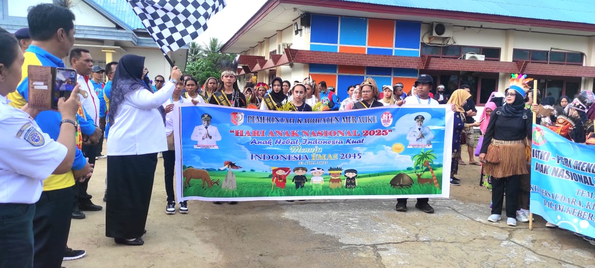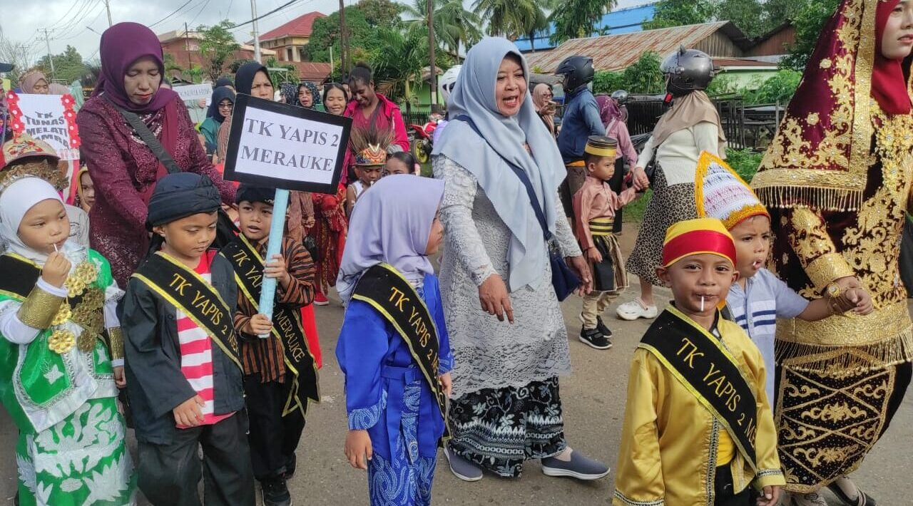 Metro Merauke – Ratusan pelajar dari tingkat TK, SD, dan SMP di Kabupaten Merauke, Papua Selatan, mengikuti karnaval budaya dalam rangka memeriahkan Hari Anak Nasional, Rabu (23/07/2025).