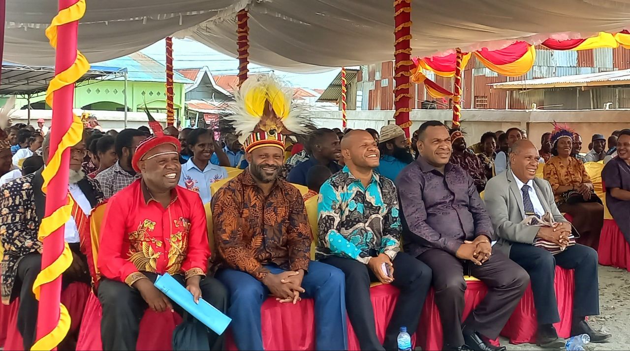 Pentahbisan dan peresmian Pos PI Gereja Kingmi Jemaat Anugrah Howale itu dihadiri Pengurus Sinode Kingmi Di Tanah Papua, Ketua Klasis Jayapura, para pendeta Jemaat Gereja Kingmin, perwakilan ondoafi, dan anggota DPR Papua, Nikius Bugiangge bersama Hengky Bayage. (Arjuna)